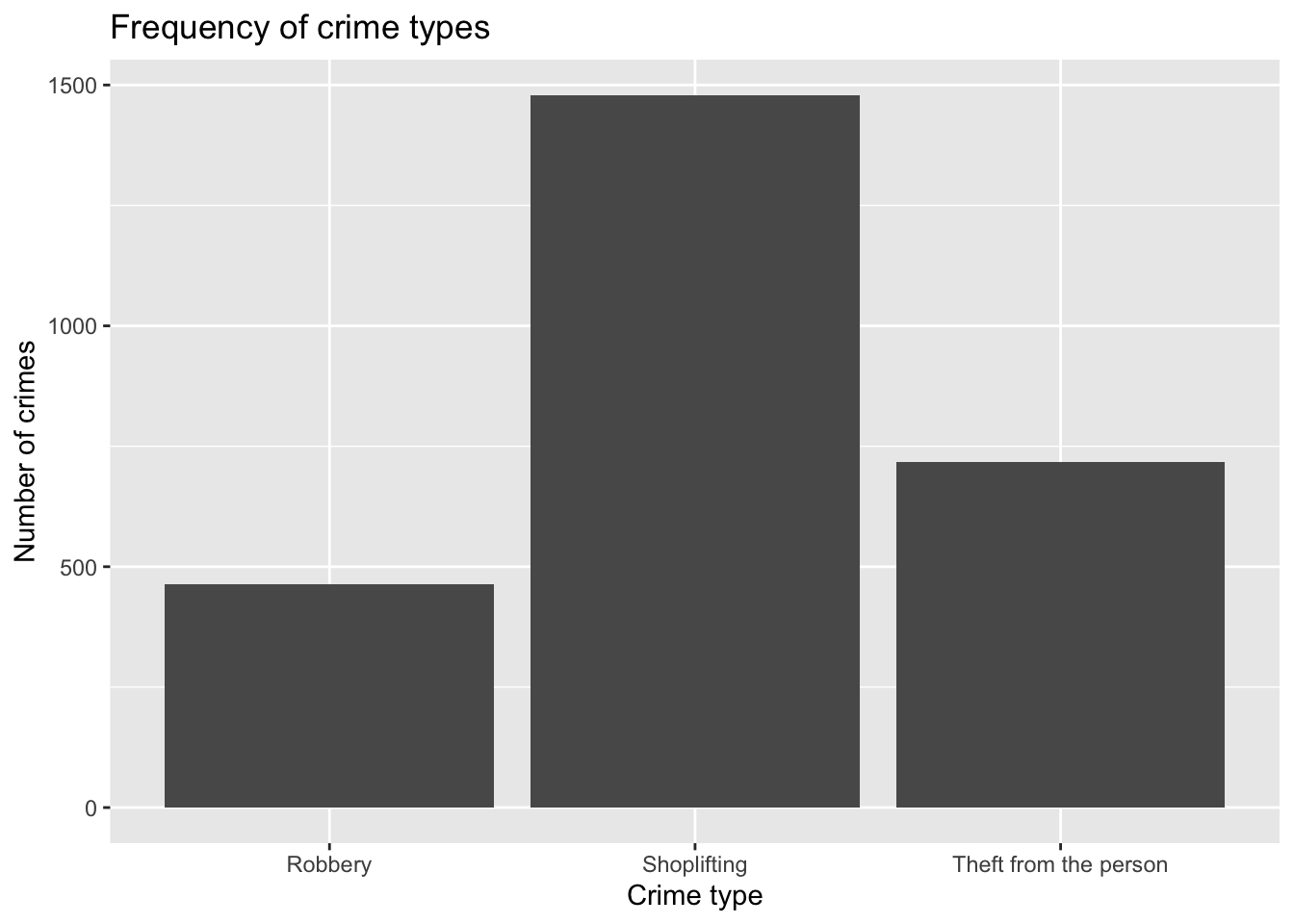In subsequent weeks we will play around with other packages in R that you can use to produce this kind of maps. Gradually we will discuss the kind of choices you can make in order to select the adequate type of representation for the type of spatial data and question you have, and the aesthethic choices that are adequate depending on the purposes and medium in which you will publish your map. But for now, we can rejoice: here is our very first crime map of the course!