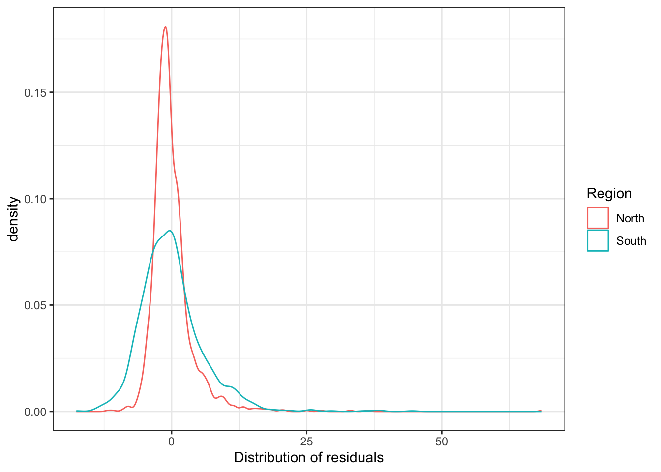 If you have read the Ballen et al. (2001) paper that we are replicating in the lab last week and this week, you will have noticed that they decided that they needed to run separate models for the South and the North. This kind of situation, where sub-regions seem to display different patterns is often alluded to by the name of spatial regimes. In the context of regression analysis, spatial regimes relate to the possibility that we may need to split our data into two (or more) sub-regions in order to run our models, because we presume that the relationship of the predictors to the outcome may play out differently in these sub-regions (spatial regimes).