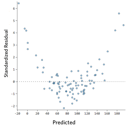 For example, these are scatterplots of residuals vs fitted values that indicate a problem:
